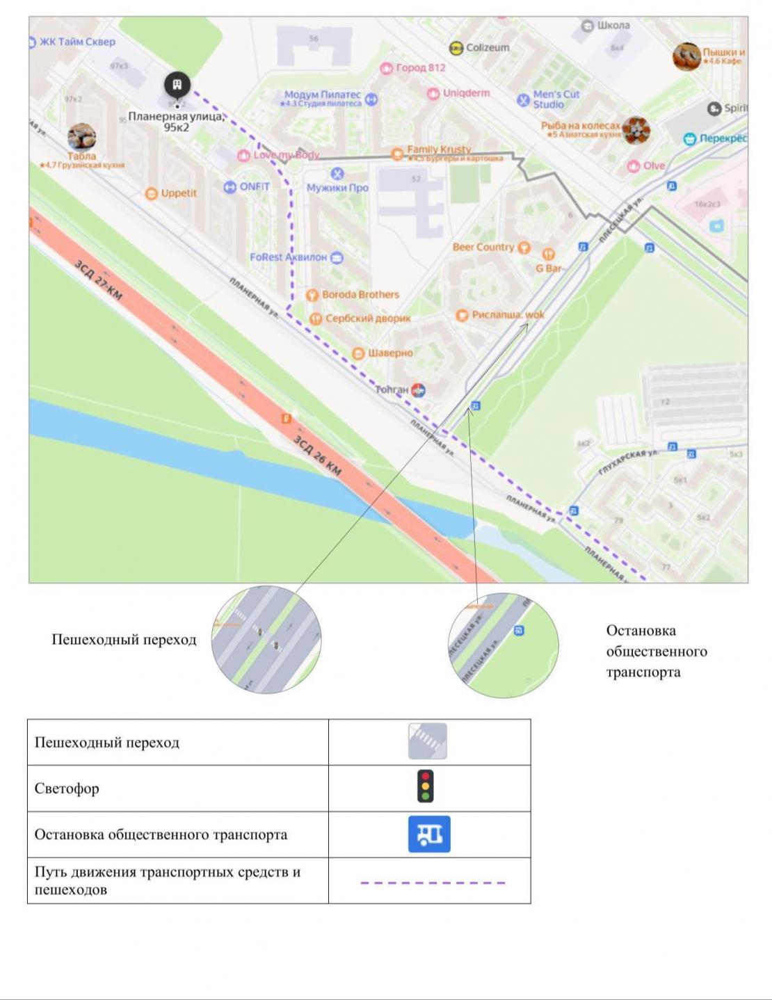 Ближайшие остановки общественного транспорта:"Дом детского творчества"Пешеходный переход регулируемый, оборудован светофором.Весь путь проходит по выделенному пешеходному пути с асфальтовым покрытием.Расстояние до входа на территорию ГБДОУ 480 метров.Время движения пешком 5-7 минут."Улица Планерная"Пешеходный переход нерегулируемый.Весь путь проходит по выделенному пешеходному пути с асфальтовым покрытием.Расстояние до входа на территорию ГБДОУ 250 метров.Время движения пешком 3-5 минут."Улица Планерная угол улицы Шаврова"Пешеходный переход регулируемый, оборудован светофором.Весь путь проходит по выделенному пешеходному пути с асфальтовым покрытием.Расстояние до входа на территорию ГБДОУ 250 метров.Время движения пешком 3-5 минут. | Ближайшие остановки общественного транспорта:"Глухарская улица"Пешеходные переходы нерегулируемые.Весь путь проходит по выделенному пешеходному пути с асфальтовым покрытием.Расстояние до входа на территорию ГБДОУ 1360 метров.Время движения пешком 15-17 минут."Плесецкая улица"Пешеходный переход нерегулируемый.Весь путь проходит по выделенному пешеходному пути с асфальтовым покрытием.Расстояние до входа на территорию ГБДОУ 1140 метров.Время движения пешком 13-15 минут."Проспект Авиаконструкторов, угол Глухарской улицы"Пешеходные переходы нерегулируемые.Весь путь проходит по выделенному пешеходному пути с асфальтовым покрытием.Расстояние до входа на территорию ГБДОУ 1480 метров.Время движения пешком 17-20 минут.
